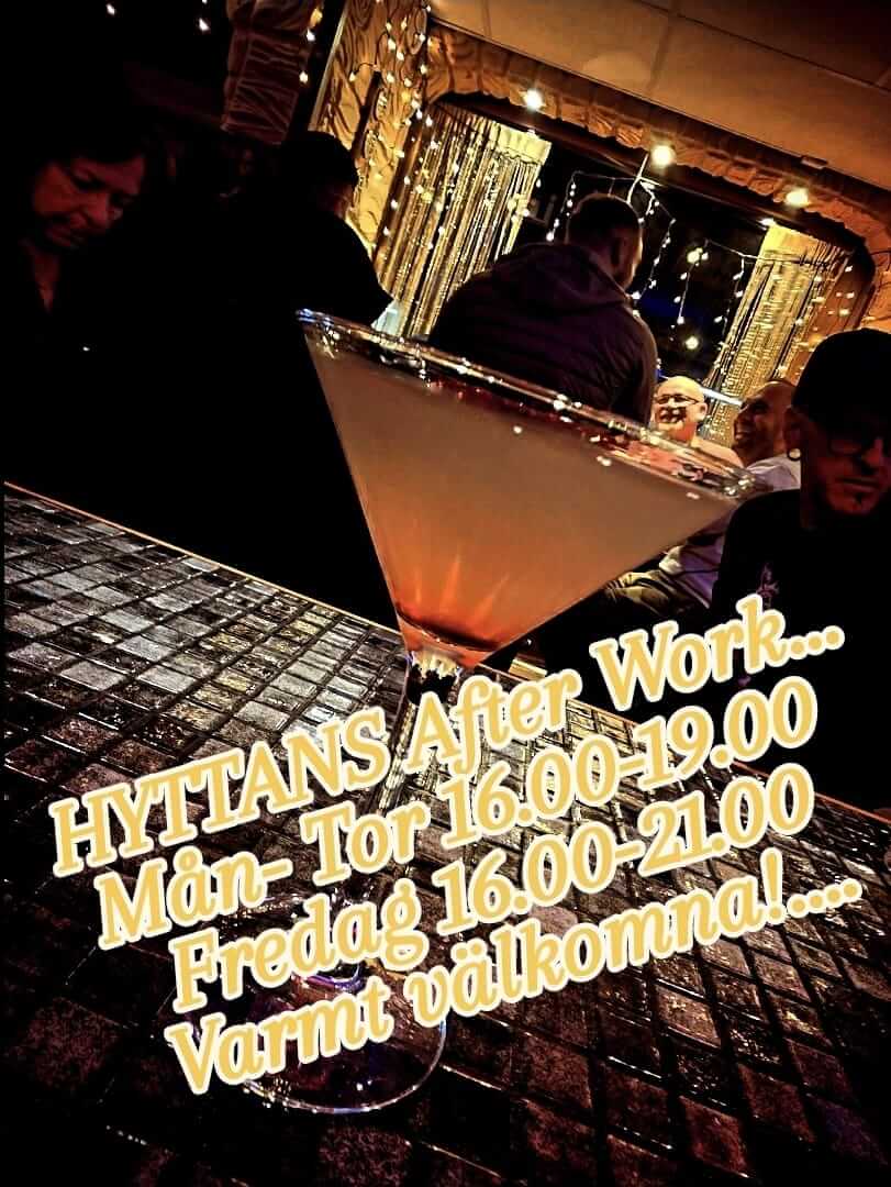”Byt kontorsstolen mot barstolen varje vardag och njut av god mat, härlig stämning och fina AW-priser hos oss på Hyttans.”